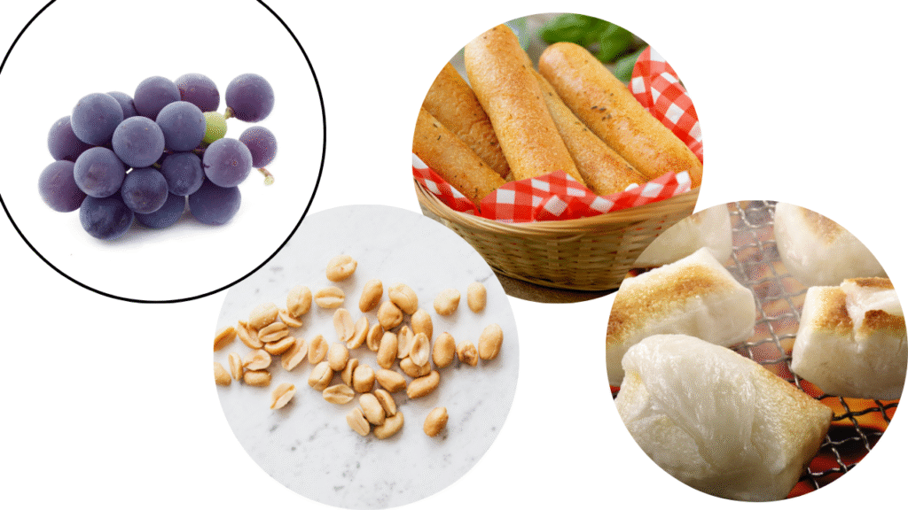 • 固くて噛み切りにくい:ナッツ類、豆類